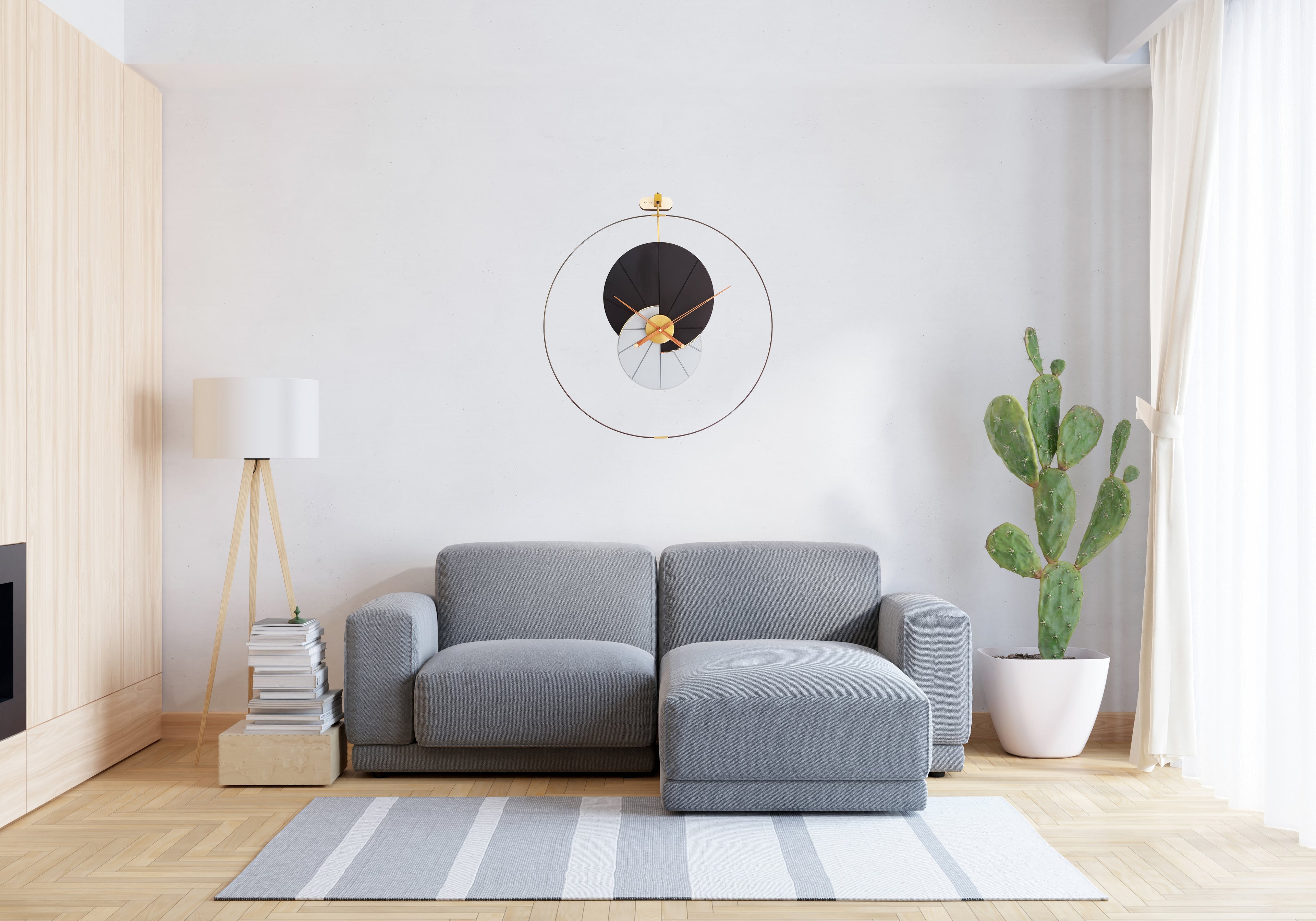 Inspired by the celestial dance of the sun and moon, Eclipse Harmony captures the beauty of cosmic alignment in a refined, modern form. Its interwoven circular design, crafted from eco-board, iron, and PVD-coated stainless steel, symbolizes infinity and balance. The harmonious palette of Cod Gray, Gray Nickel, and Golden Grass adds depth and contrast, making it a striking statement piece.