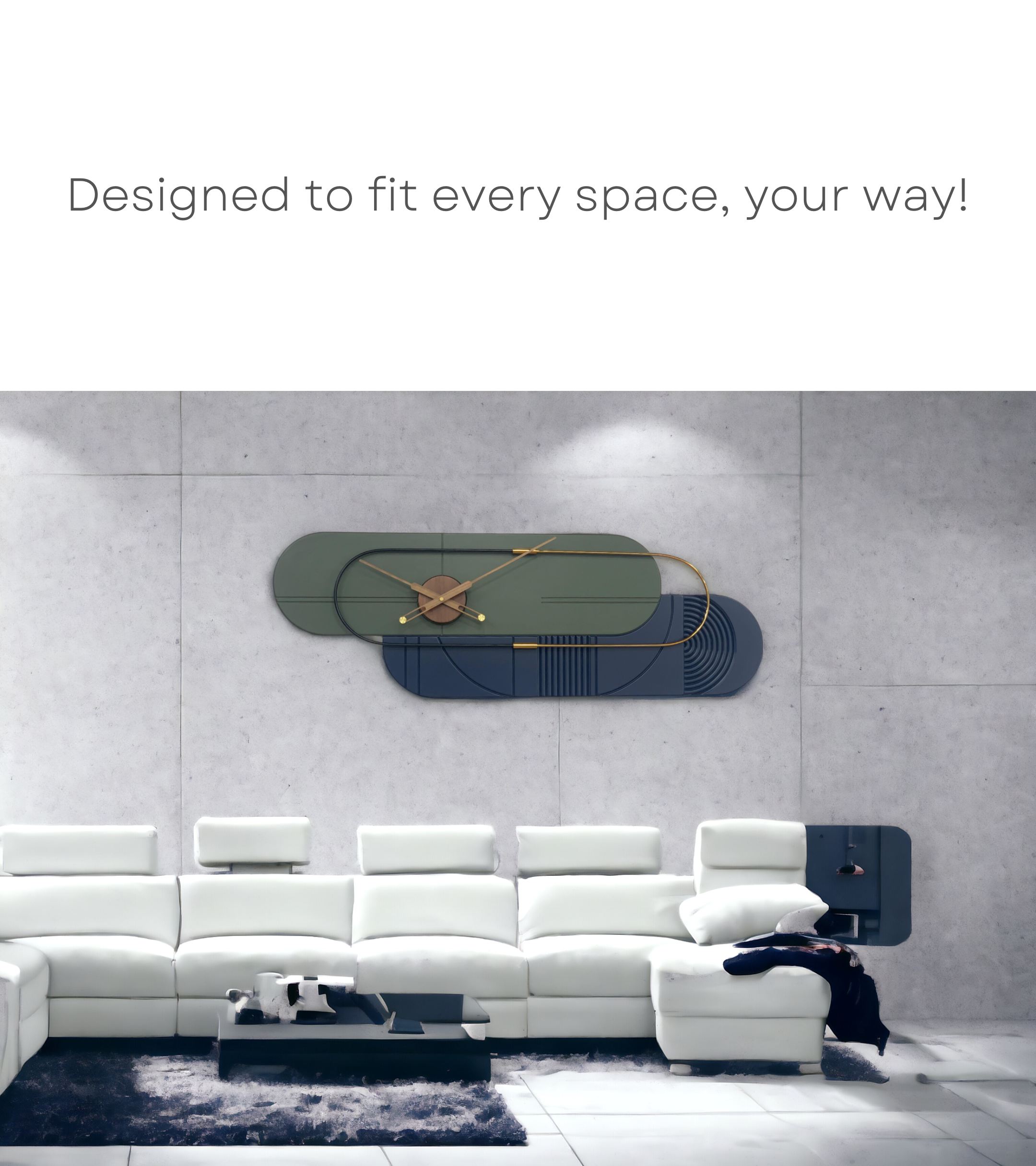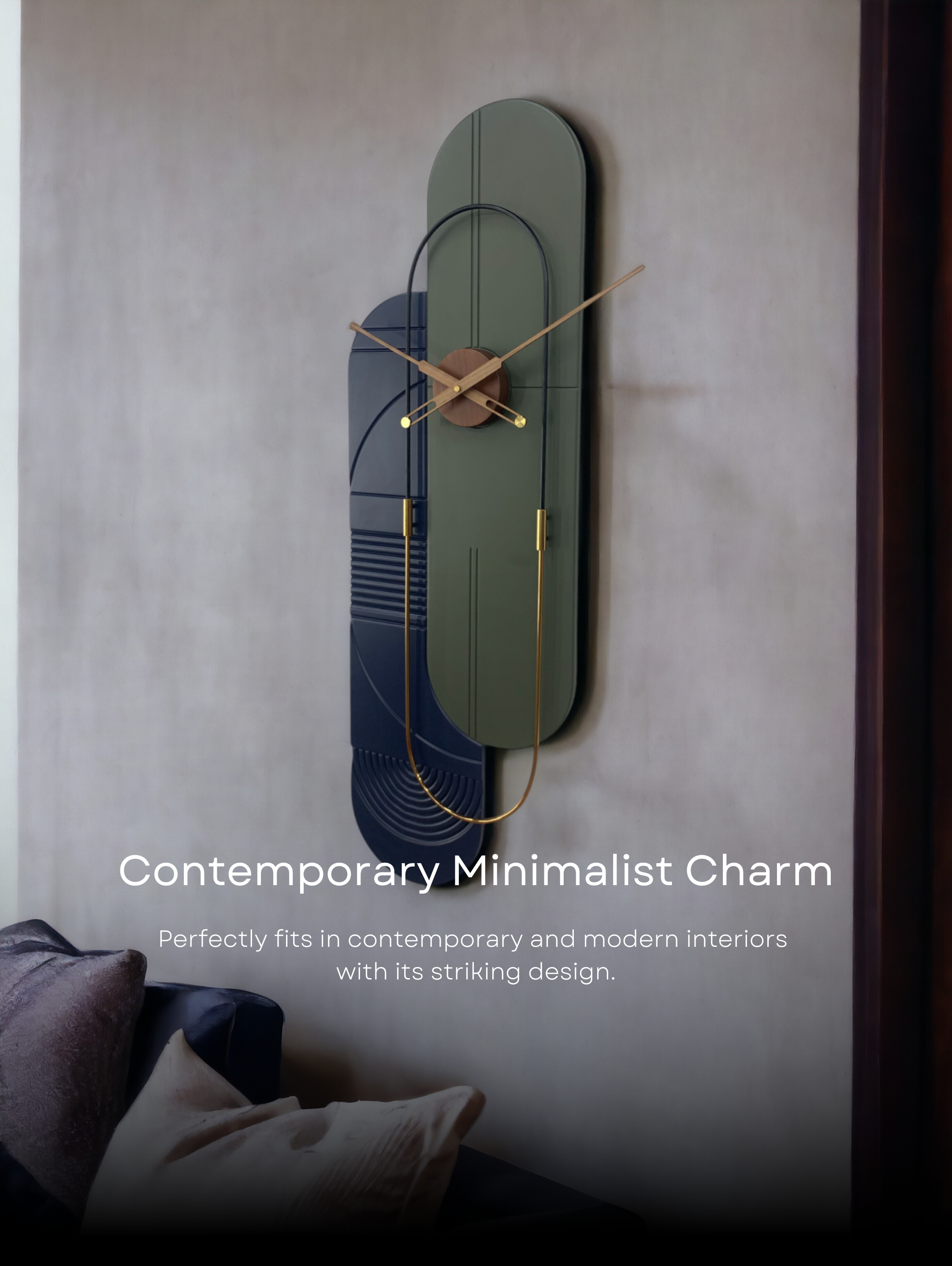The Epoch Wall Clock is a perfect blend of form and function, designed to complement modern interiors. With its dual orientation, it can be displayed vertically or horizontally, adapting seamlessly to different spaces. The combination of electroplated iron, CNC-engraved textures, and walnut hands adds a refined touch.